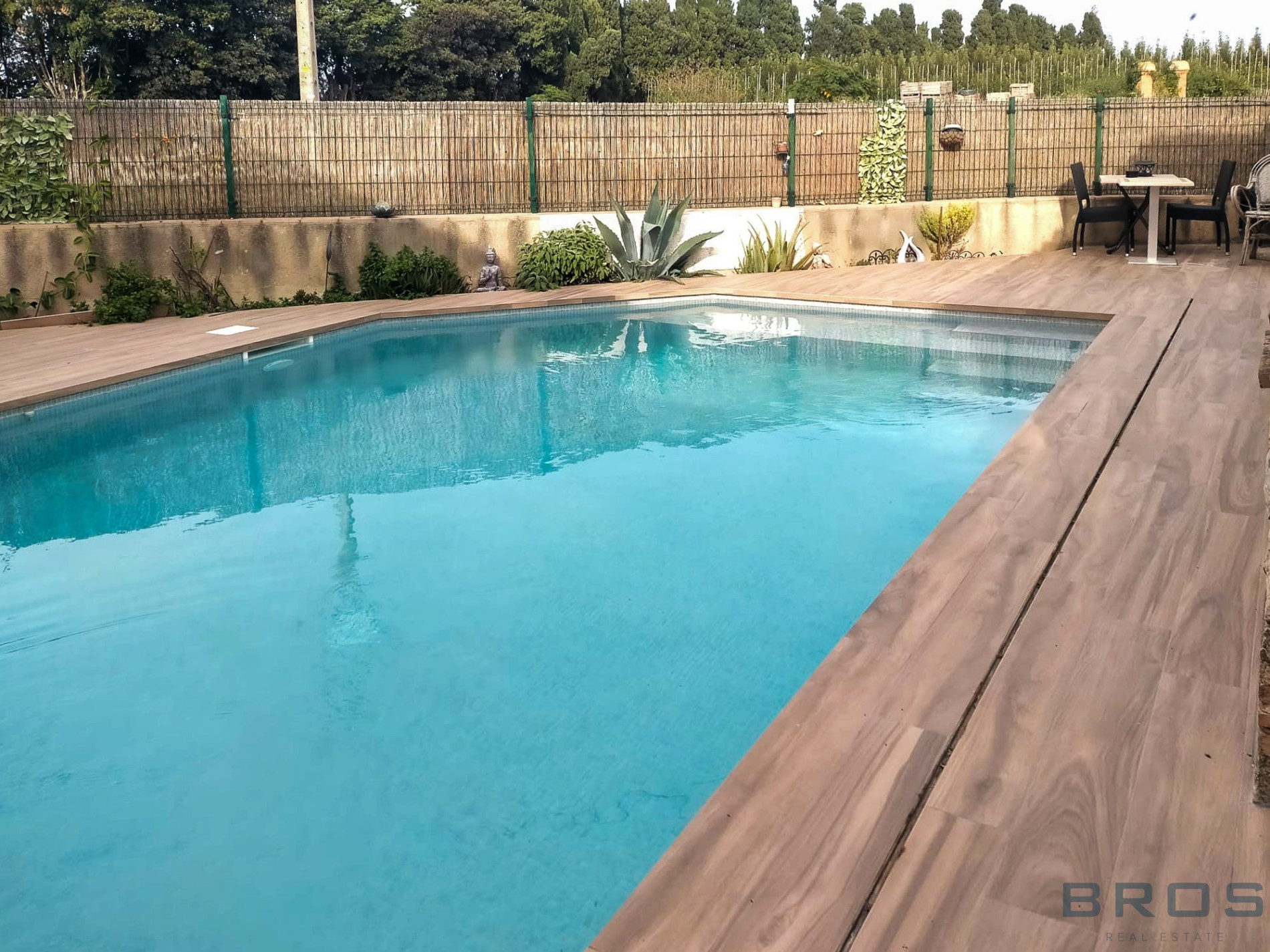 The exterior is a true Mediterranean oasis: a magnificent private swimming pool surrounded by ceramic decking, chill-out area, jacuzzi, built-in barbecue and wood-fired oven, and a low-maintenance garden that ensures privacy and harmony.