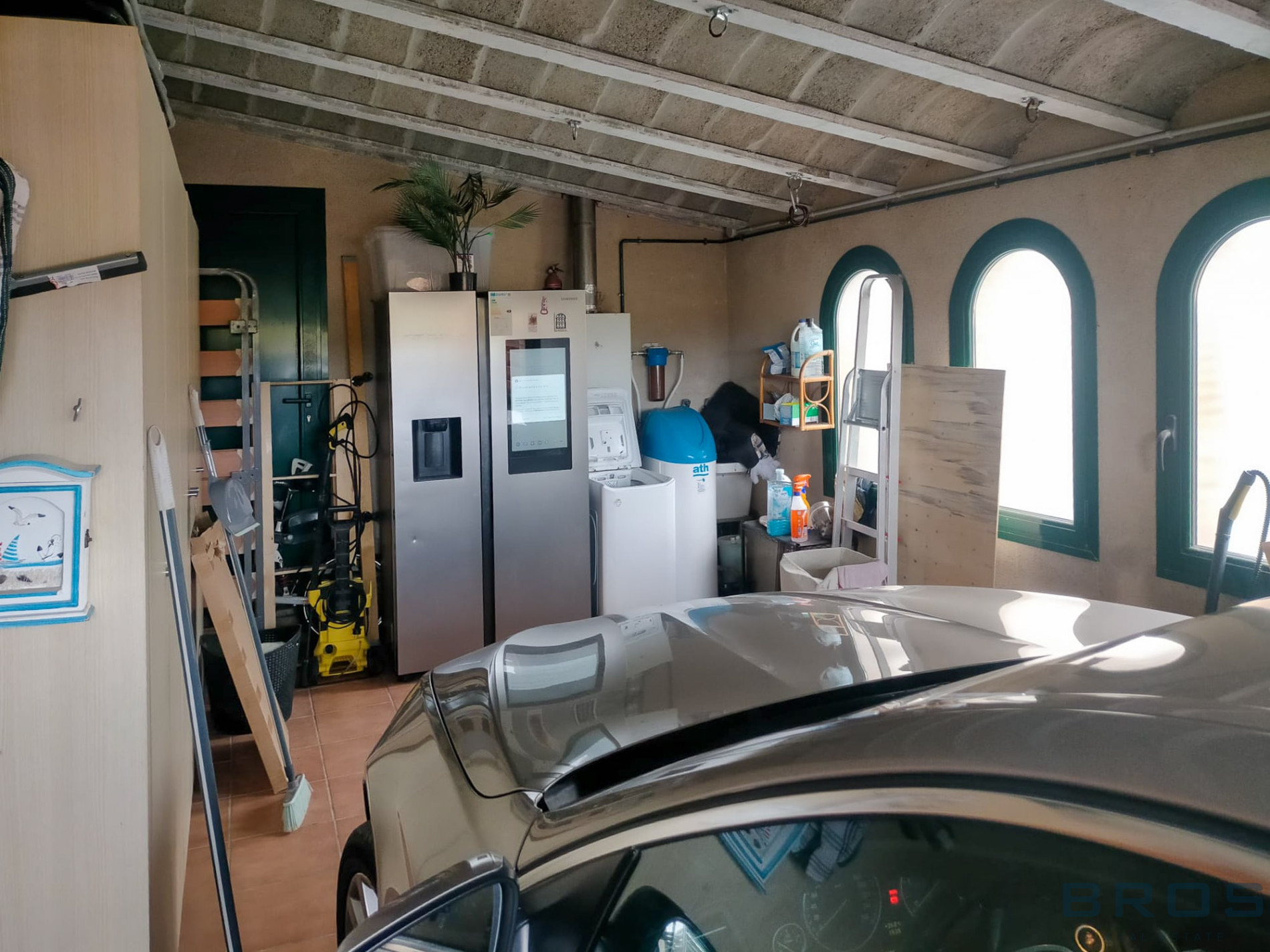 The property also includes a closed garage and additional private parking space within the plot.