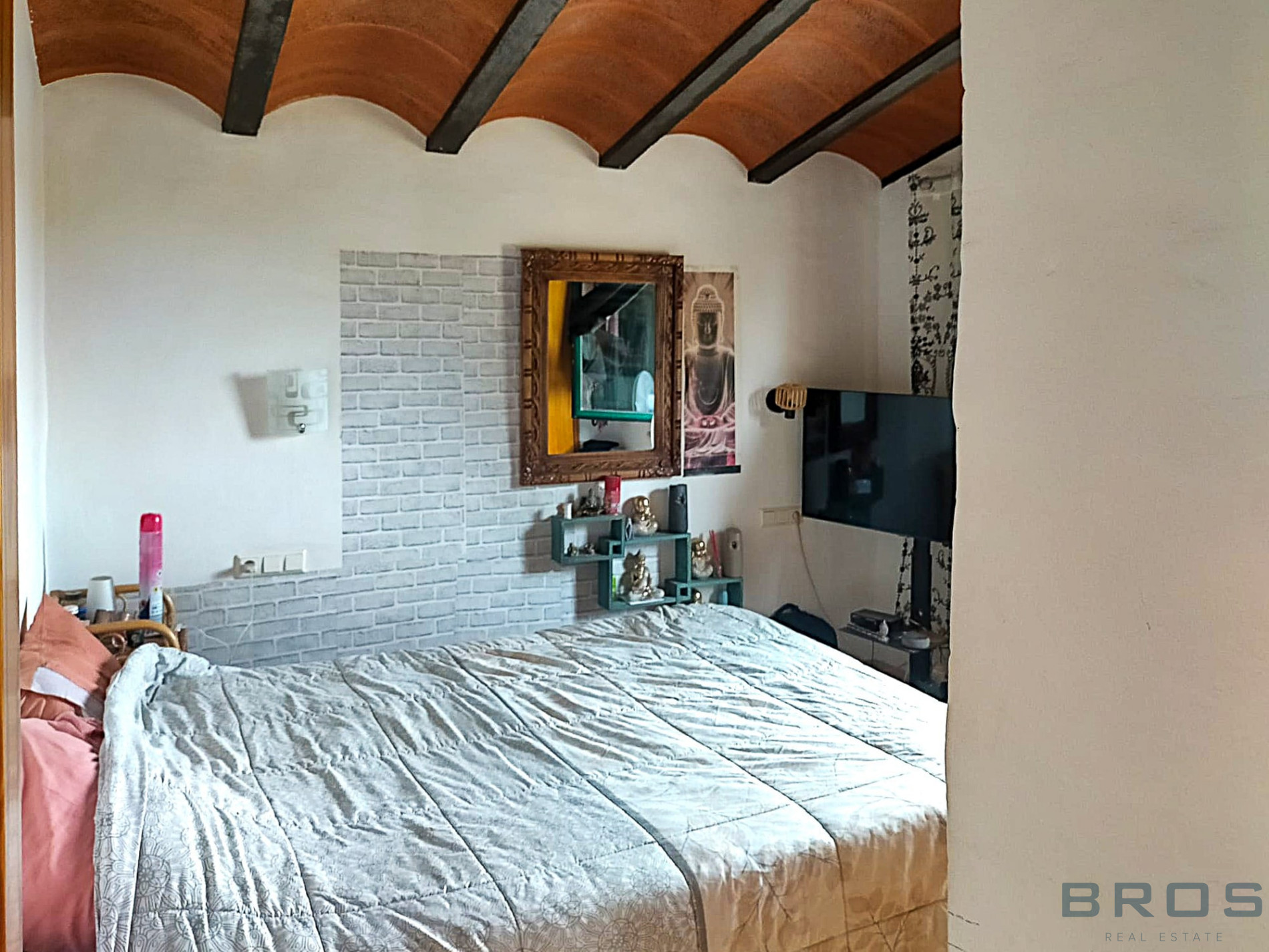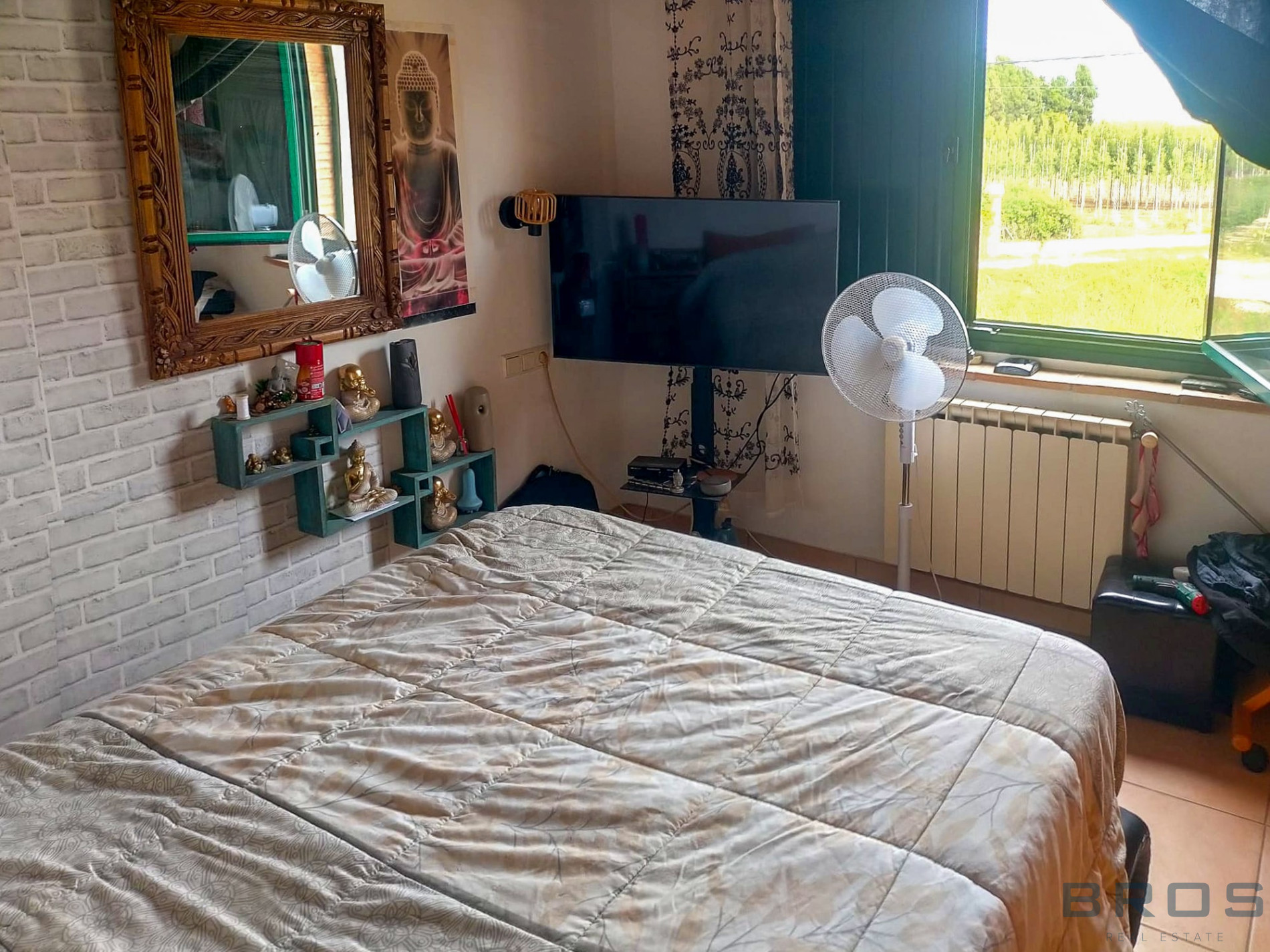The upper floor features two large double bedrooms and a generous private terrace with open views of the surrounding landscape — perfect for enjoying the sun and the peaceful atmosphere of the Empordà region.