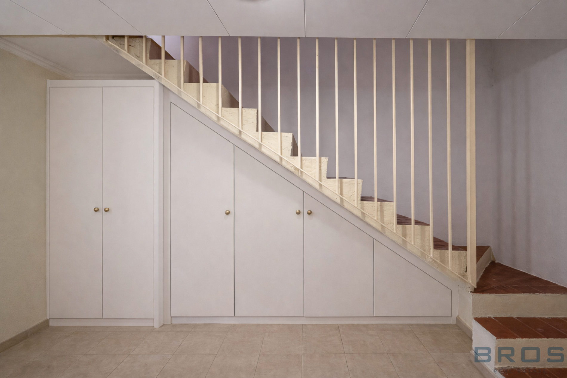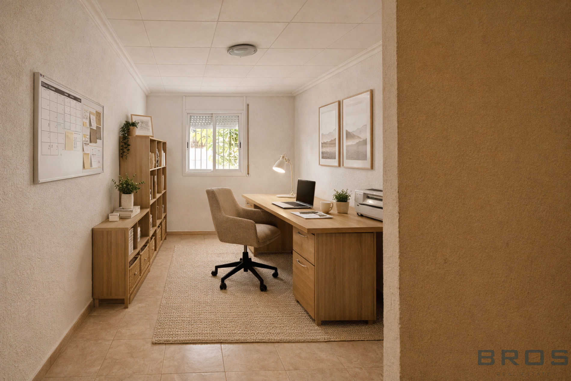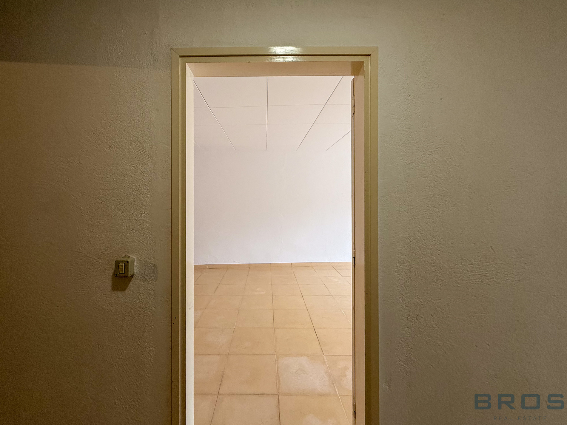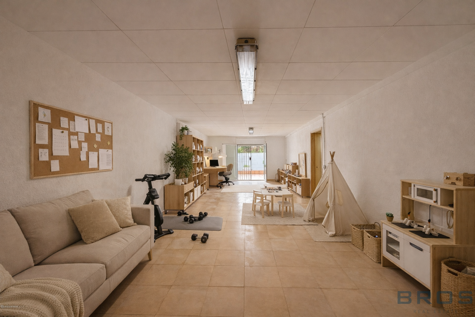 Hi trobem un gran espai diàfan dividit en dues àrees, perfecte per adaptar-lo com a estudi, despatx, gimnàs, sala de jocs o zona polivalent.