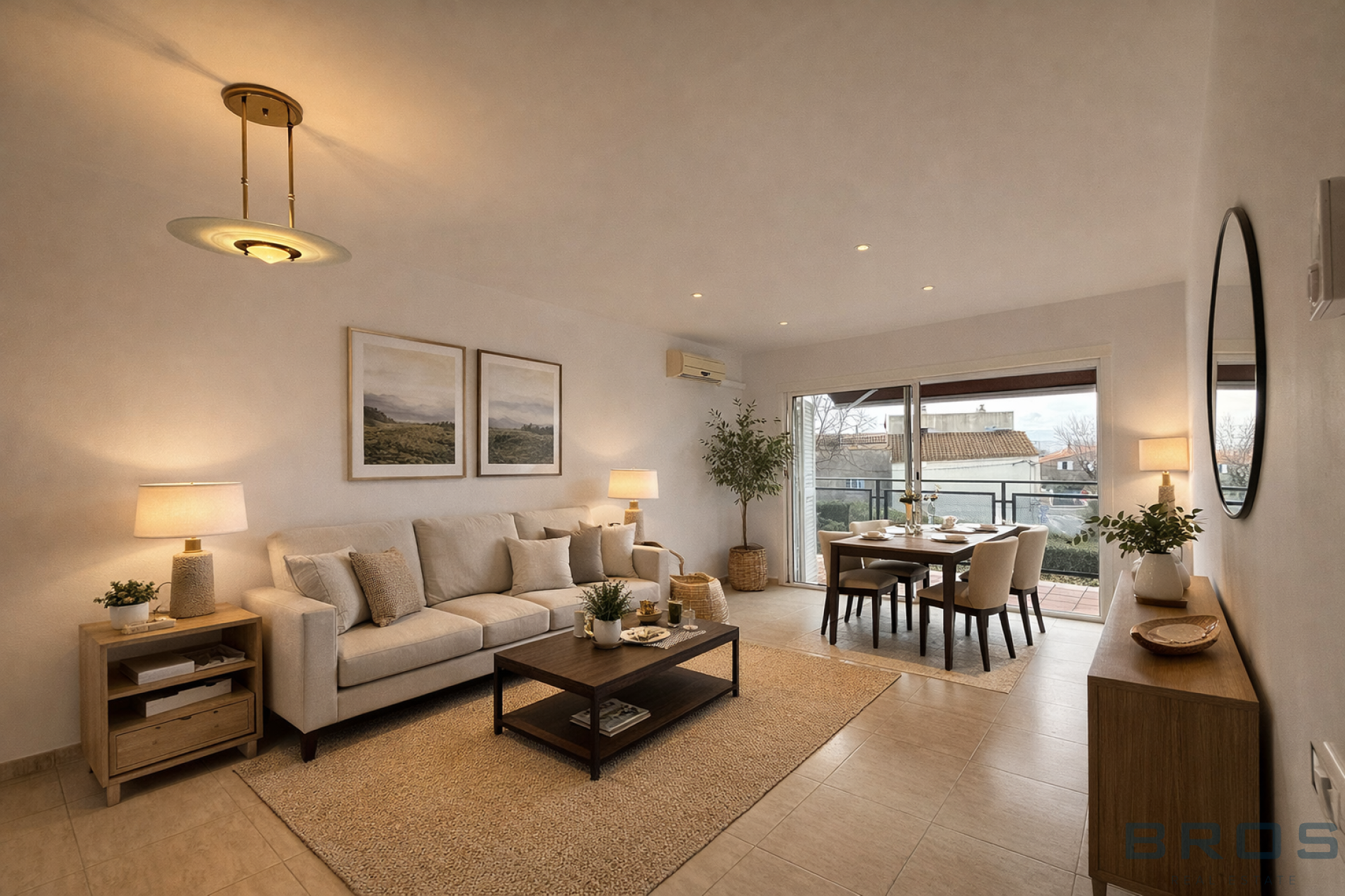 Accedim a l’habitatge a través d’un rebedor. A l’esquerra hi trobem l’accés directe al garatge. Continuant, disposem d’un bany de cortesia i arribem a un ampli i lluminós saló-menjador, amb sortida a una terrassa.