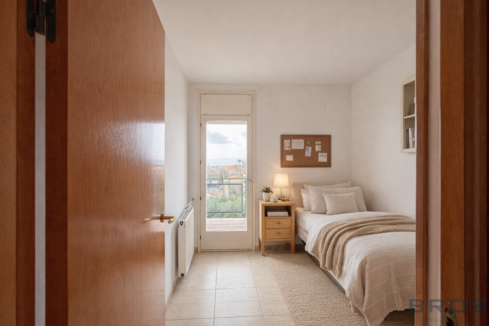 La cuina, situada al costat del saló, és molt espaiosa i també disposa de sortida directa a la terrassa, creant un espai ideal per al dia a dia i per a reunions familiars.