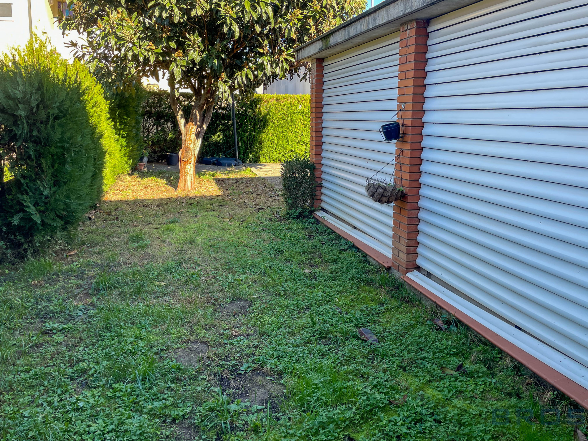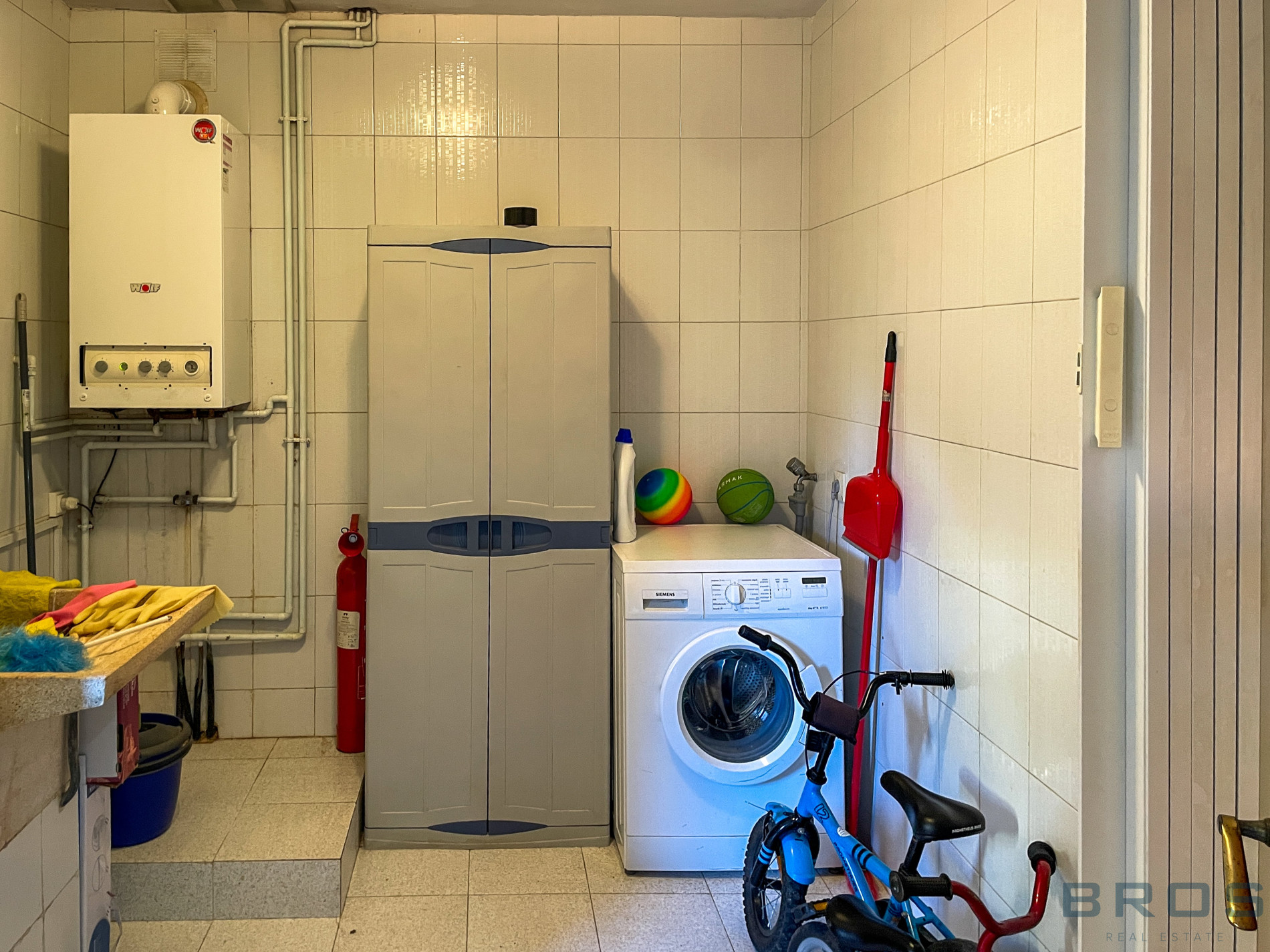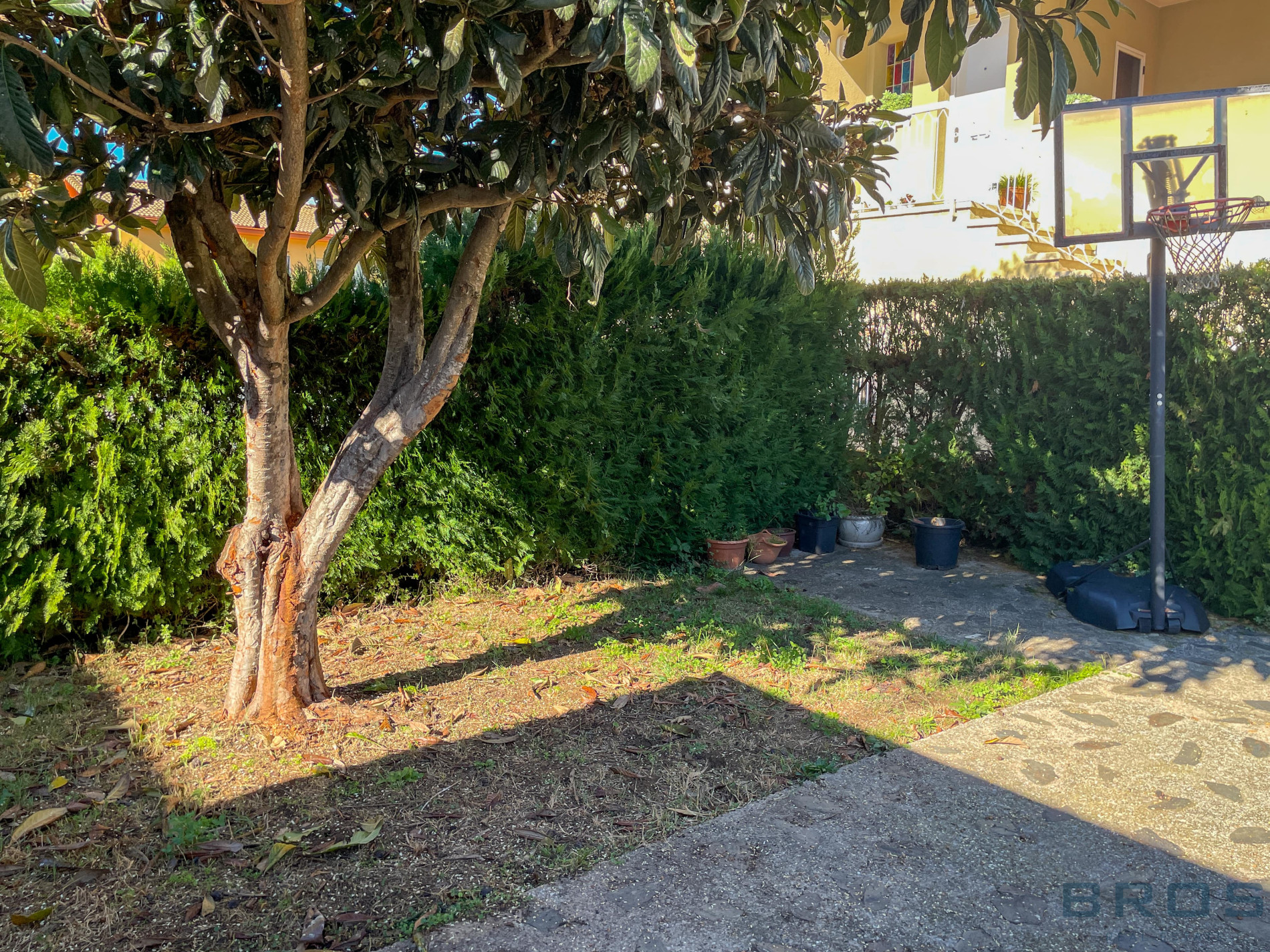 Construite sur deux étages et avec un accès de plain-pied depuis la rue, le rez-de-chaussée est conçu comme espace de vie principal. Depuis l’entrée, on accède à deux grandes pièces et à une spacieuse cuisine avec coin repas. À côté se trouvent la buanderie, également utile comme cellier, et des toilettes de courtoisie. La cuisine et la buanderie donnent toutes deux sur le jardin privé, de très bonnes dimensions, idéal pour une aire de jeux, un coin détente ou un espace repas extérieur avec barbecue couvert en briques. Sur un côté du jardin se trouve le garage fermé, adapté à un grand véhicule et avec espace supplémentaire pour vélos ou motos.