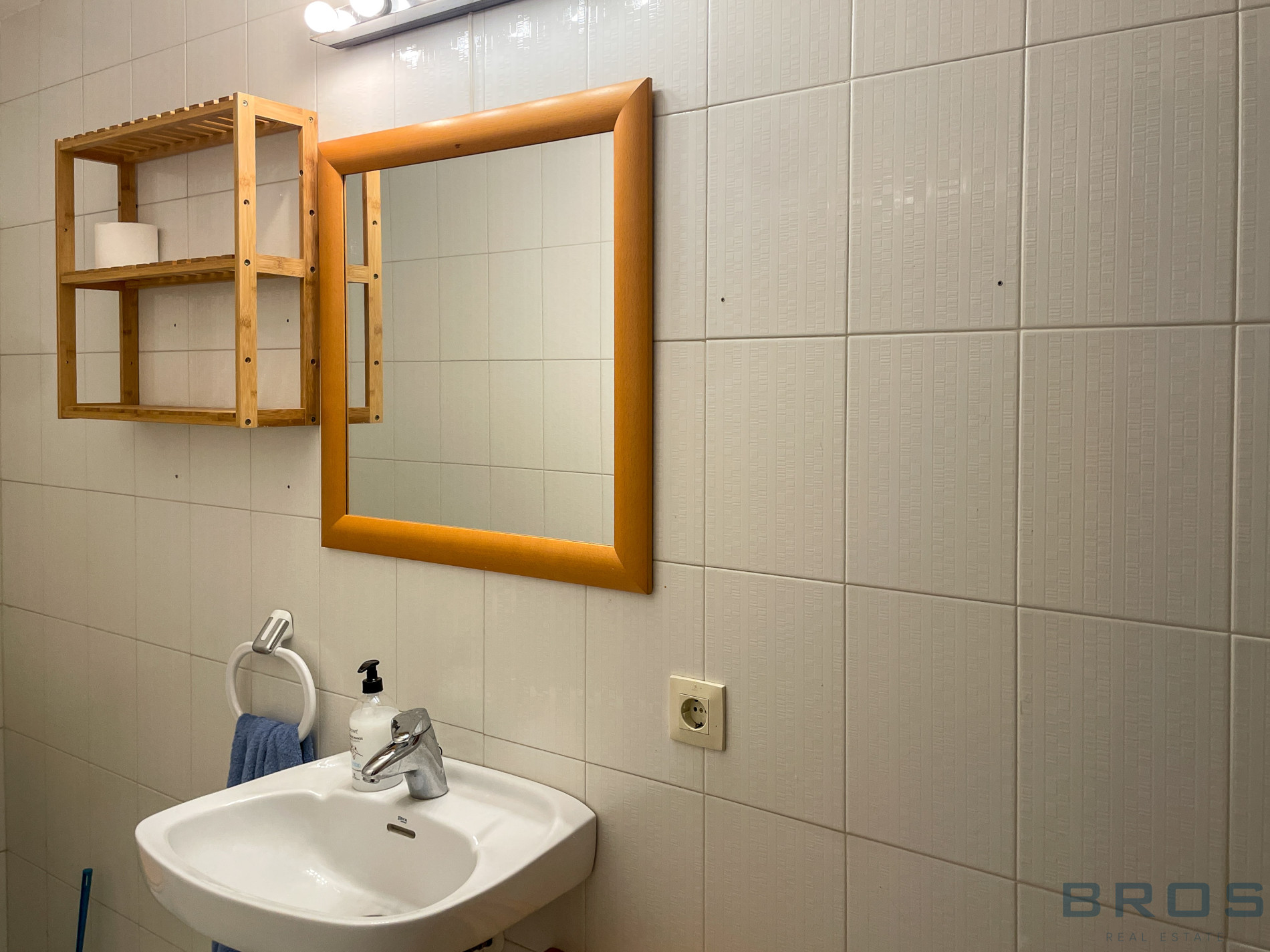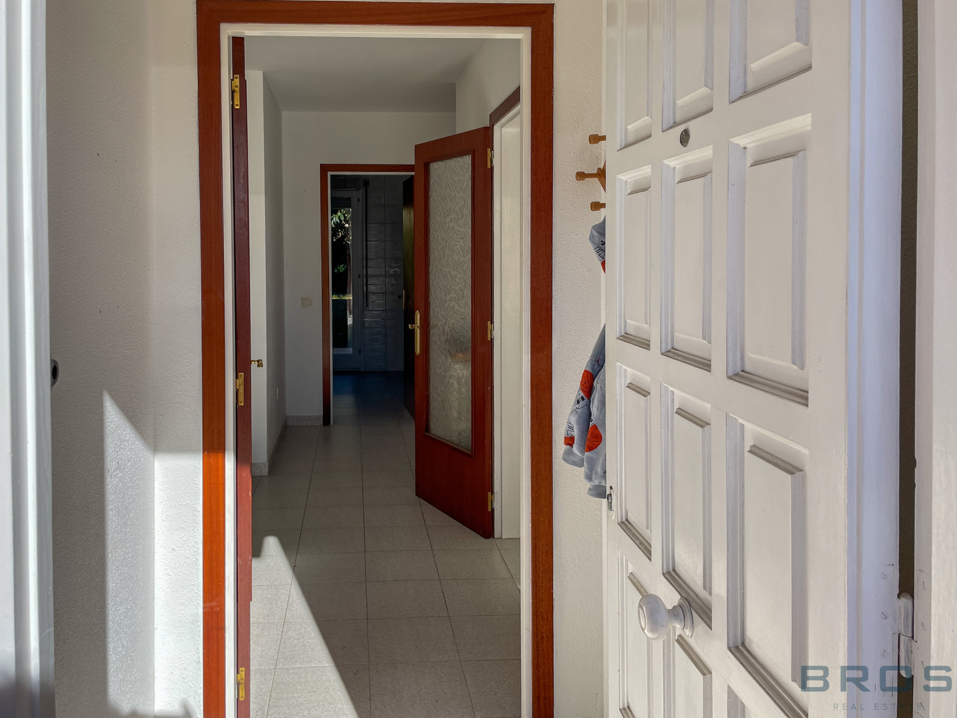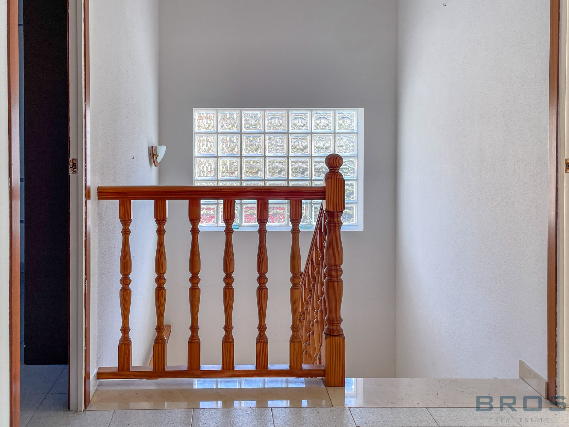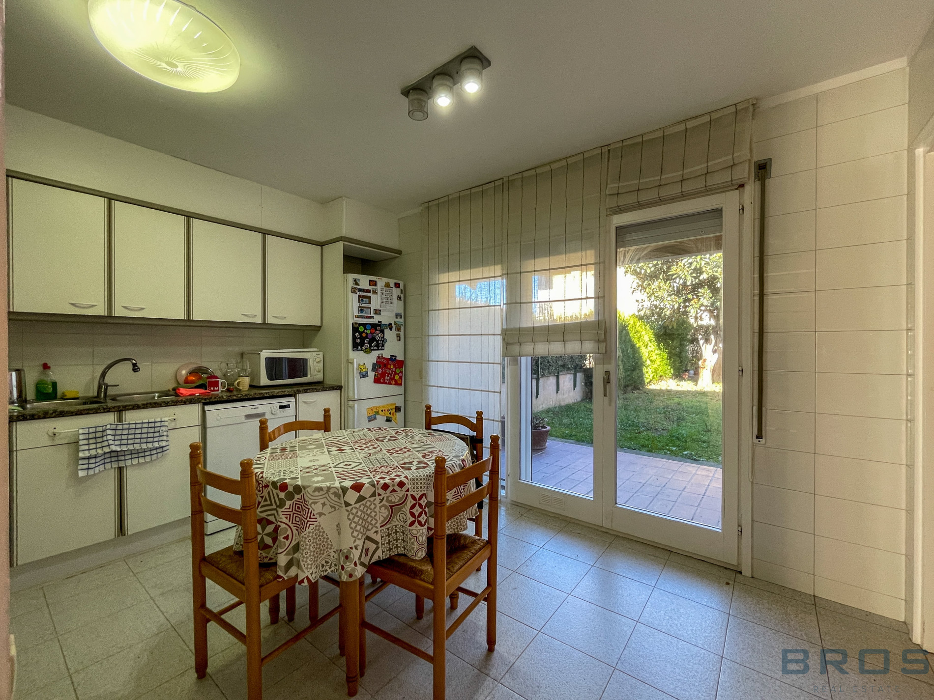 Construite sur deux étages et avec un accès de plain-pied depuis la rue, le rez-de-chaussée est conçu comme espace de vie principal. Depuis l’entrée, on accède à deux grandes pièces et à une spacieuse cuisine avec coin repas. À côté se trouvent la buanderie, également utile comme cellier, et des toilettes de courtoisie. La cuisine et la buanderie donnent toutes deux sur le jardin privé, de très bonnes dimensions, idéal pour une aire de jeux, un coin détente ou un espace repas extérieur avec barbecue couvert en briques. Sur un côté du jardin se trouve le garage fermé, adapté à un grand véhicule et avec espace supplémentaire pour vélos ou motos.
